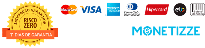 Pagagamento Seguro: Seus pagamentos são feitos diretamente nos gateways de pagamentos mais seguros do Brasil: Monetizze. Nosso site não recebe e nem armazena nenhum de seus dados inseridos na compra.